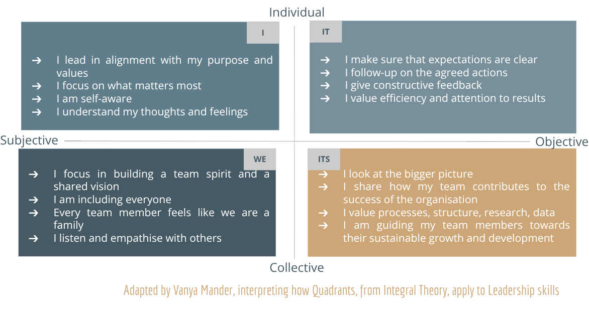 Let`s answer that by mapping your leadership skills with the 4 quadrants of Integral Theory by Ken Wilber.
